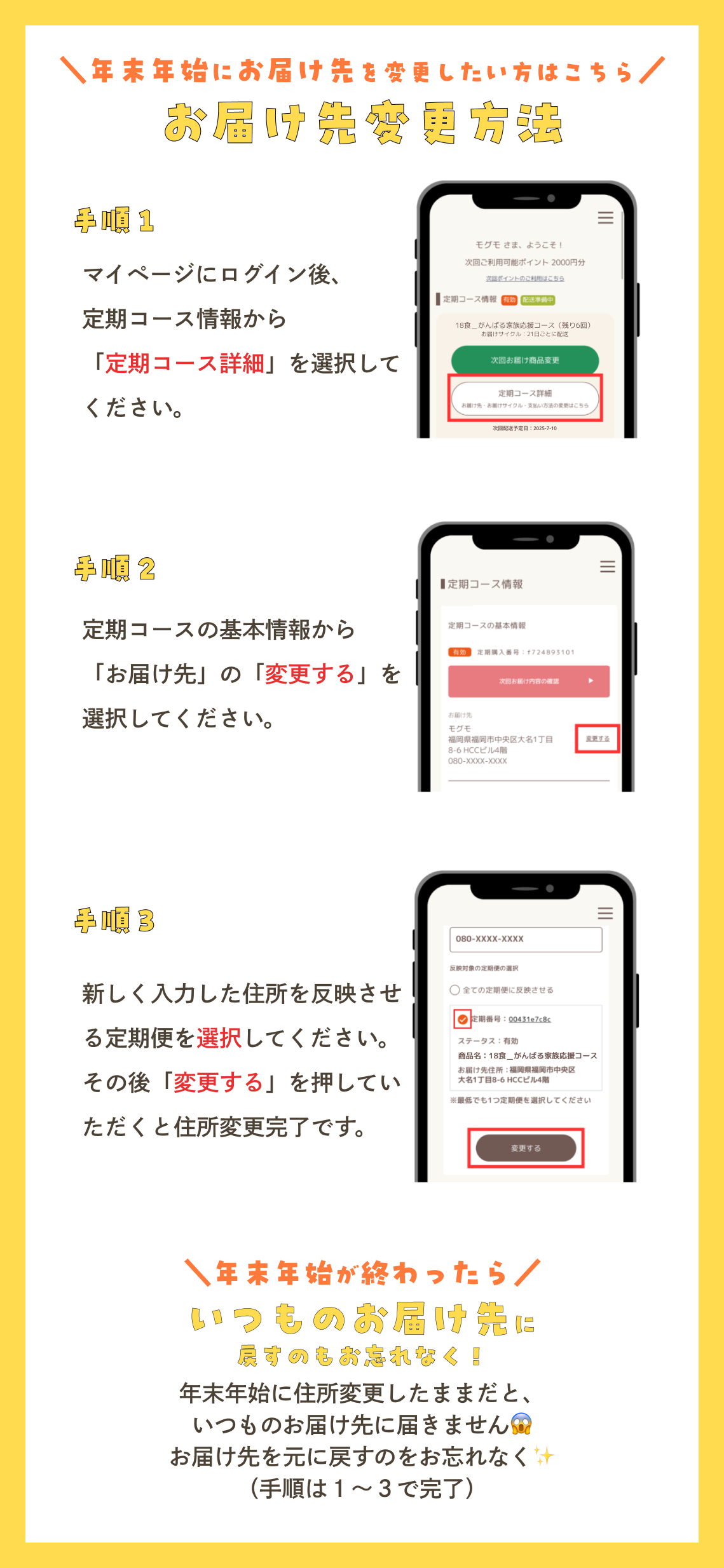 ※12月22日以降に変更手続きをされた場合、1月5日(月)以降、順次発送となります。
