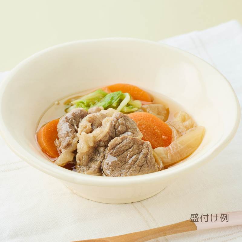 やわらかく仕上げたお肉と野菜を、すきやき風の味付けでコトコト煮込みました。